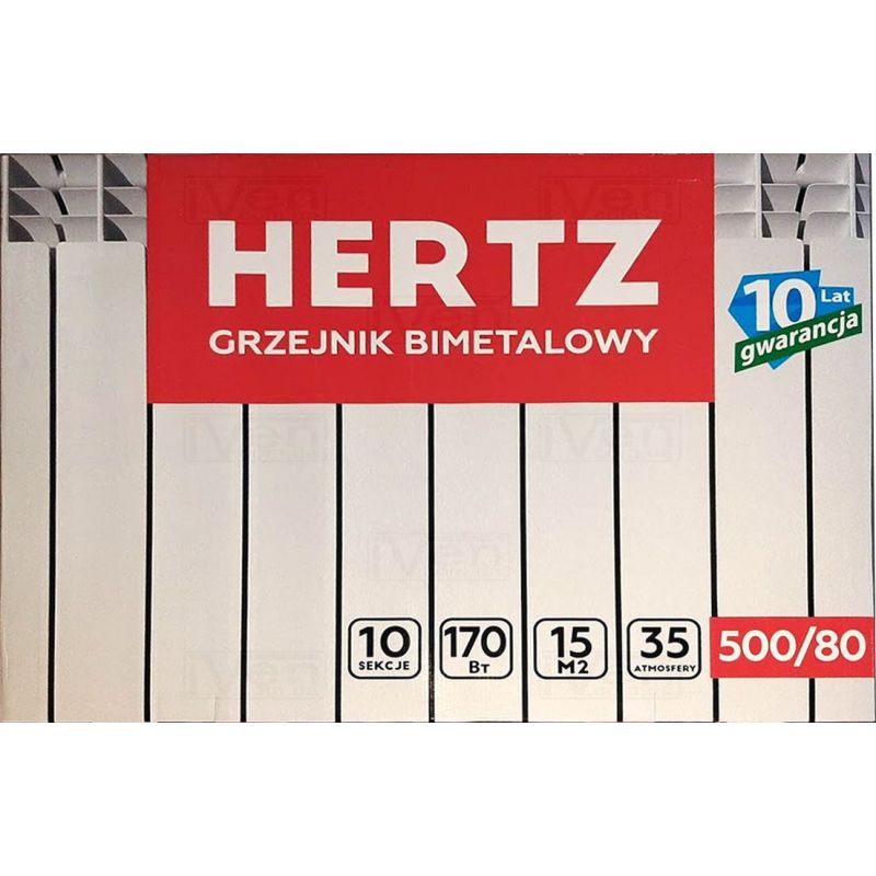 Біметалічний радіатор HERTZ 500/80 - високоякісний радіатор для опалення, країна виробник Польща. Має структуру двох металів. Каркас (трубки) виготовлений зі сталі, навколо якого є алюмінієва форма. Цей варіант забезпечує високий робочий тиск до 35 Бар.
