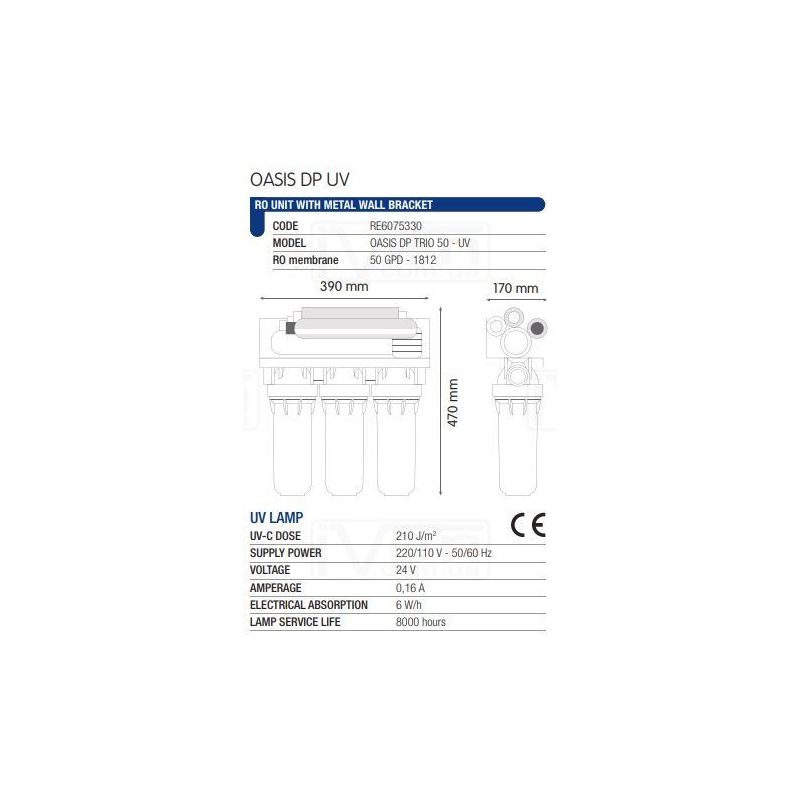 Водяний фільтр зворотного осмосу для установки під раковину Atlas Filtri OASIS DP UV з УФ лампою (RE6075332) виробництва Atlas Filtri розработан для повного очищення води.