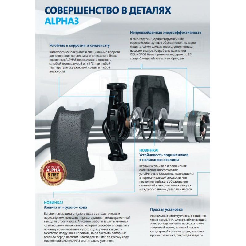 Представляючи Вашій увазі новий насос APLHA3 , Grundfos пропонує переосмислити роль компактного циркуляційного насоса в системі опалення. ALPHA3 не тільки дозволяє провести професійну гідравлічну балансування двухтрубной радіаторної системи опалення, але тепер і балансування систем «теплої підлоги». Крім того, нові функції і додаткові вбудовані захисту підвищили надійність роботи насоса і збільшили стійкість всієї опалювальної системи.