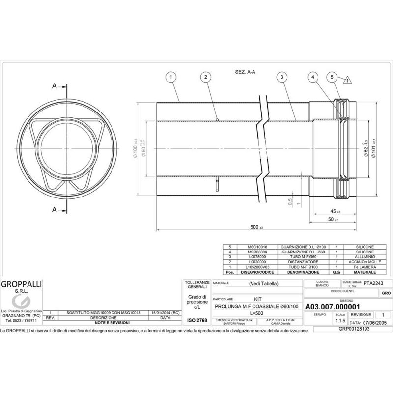 Подовжувач коаксіальний з розтрубом для традиційних котлів d60/100 L-500 mm GROPPALLI SRL (A371) виготовлений з Італьянискім якістю і відповідно сертифікації ISO 9001 діє до: 2015.
