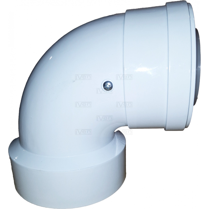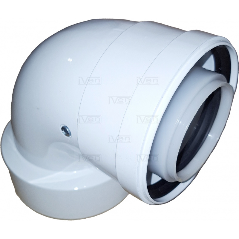 Коліно перехідник 90 градусів конденсаційне коаксіальне з d80/125 на 60/100 PP-R + AL для котла.