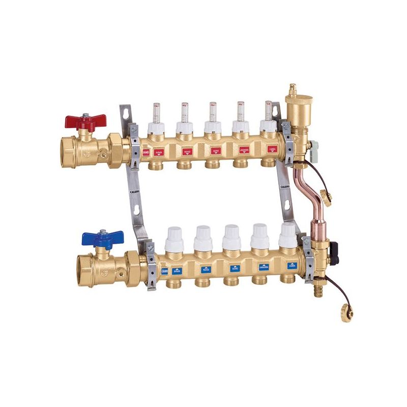 6687L5 Колектор латунний з мікрометрами Ø1 1/4" В х10 х3/4" З в сборі 5÷60°C 6 bar Caleffi S.p.a
