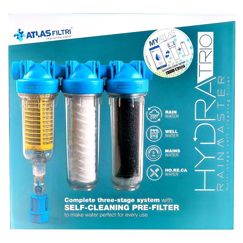 Багатоступінчаста фільтрація води в серії HYDRA RAINMASTER TRIO забезпечить високу якість фільтрації води і просту установку і самообслуговування. Така комбінація забезпечує високу надійність і шанс витоку води прагне до нуля. Атлас Фільтри випустив в продаж цей продукт, тим самим отримує перевагу в безпеці, простоті і здешевлення вартості.