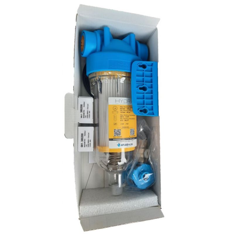 Atlas Filtri HYDRA ця серія фільтрів від Atlas Filtri призначена для попереднього очищення води від великих часток з розмірами до 50 mcr і завдяки картриджа RSH, який йде в комплекті. Весь осад після фільтрації можна прибрати не відкручуючи колбу, за допомогою краника, в нижній частині корпусу для спуску забруднень.