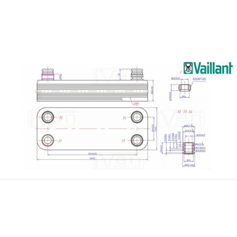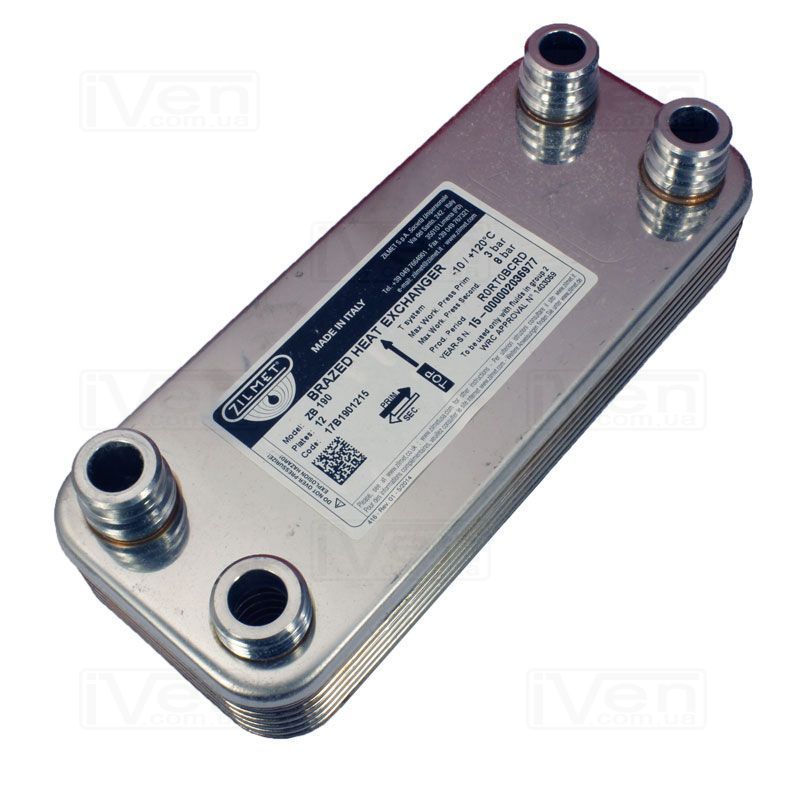Інформація Теплообмінник ZB 190 (INOX AISI 316L) 12 пластин 1 x Ø1/2"G / 3 x Ø20,8 Zilmet S.p.A. (17B1901215)