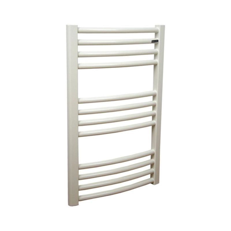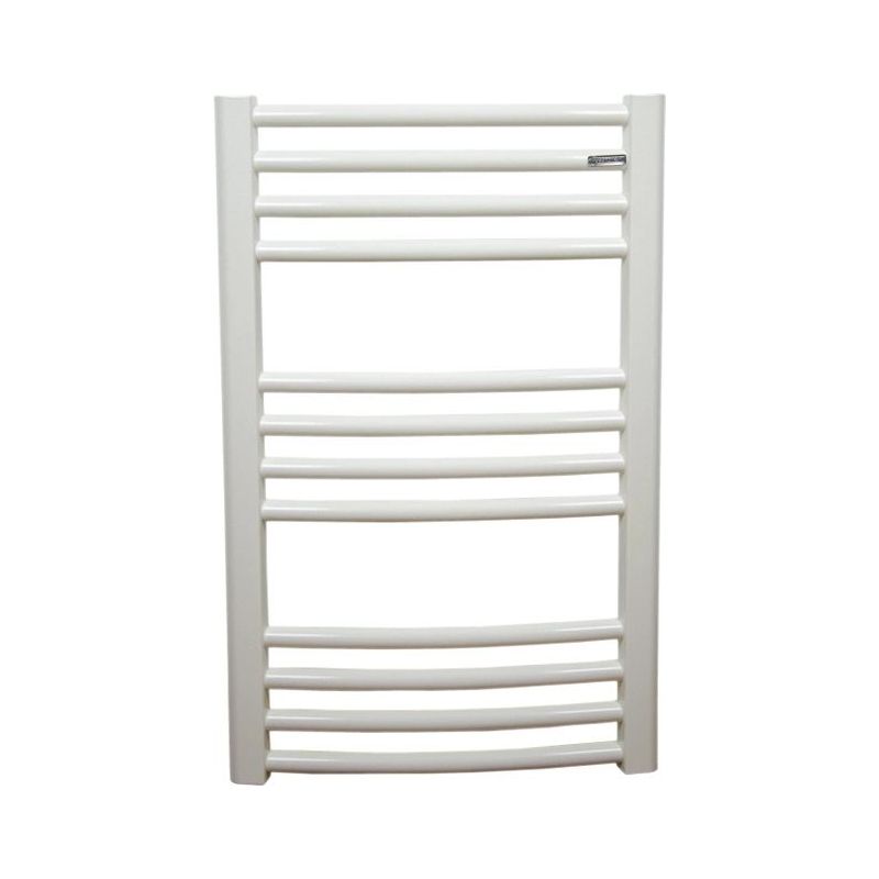 CORDIVARI ROBERTA CURVO 700 x 450 мм Білий (3551650000241) з кодом коляру RAL9010 виготевлений зі сталі, Вертикальні колектори з пофарбованої м'якої сталі напівовалу 30x40 мм, вигнуті оризонтальні нагрівальні елементи з пофарбованої м'якої сталі ø 22 мм. Розроблео і виготовлено в Італії.