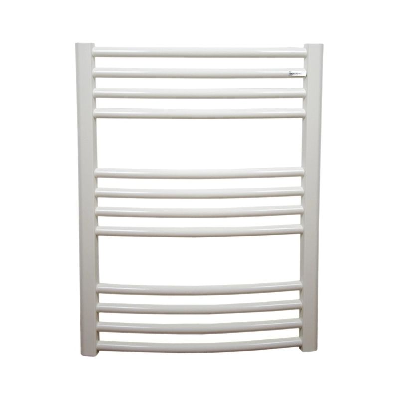 CORDIVARI ROBERTA CURVO 700 x 500 мм Білий (3551650000242) з кодом коляру RAL9010 виготевлений зі сталі, Вертикальні колектори з пофарбованої м'якої сталі напівовалу 30x40 мм, вигнуті оризонтальні нагрівальні елементи з пофарбованої м'якої сталі ø 22 мм. Розроблео і виготовлено в Італії.