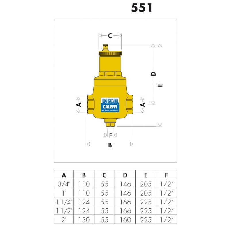 Габарити CALEFFI Деаератор DISCAL ВВ 10 bar (55100)