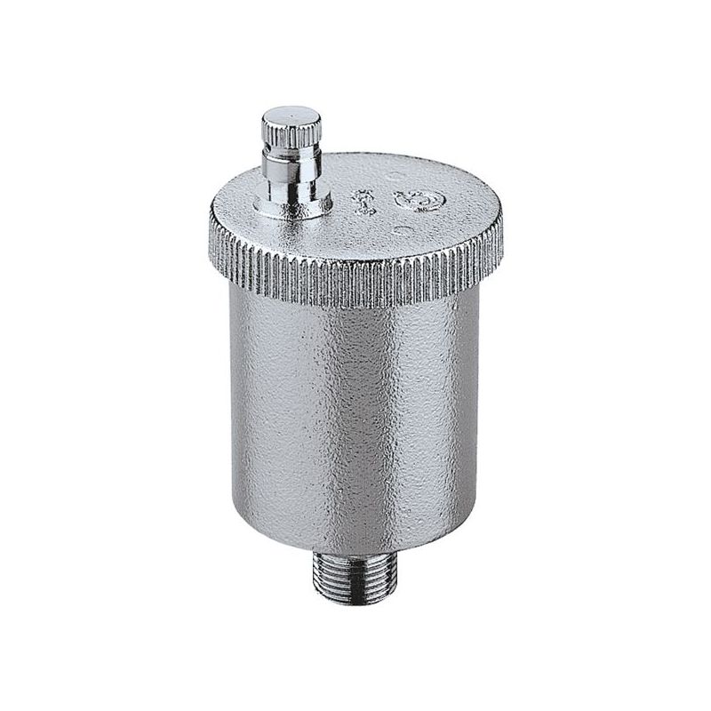 CALEFFI Valcal Повітровідвідник автоматичний вертикальний хромований d1/2" З 120°C 10 bar (502241) Автоматичний вентиляційний отвір. Різьбові з'єднання 1/2” Хромована з металевою кришкою. Корпус і кришка з латуні, поплавок з ПП, латунний шток обтюратора, ущільнювальні кільця EPDM. Середовище: розчини води та гліколю. Макс. відсоток гліколю 30 %. Максимум робочий тиск 10 бар, максимальний тиск нагнітання 4 бар. Максимальна робоча температура 120 °C.