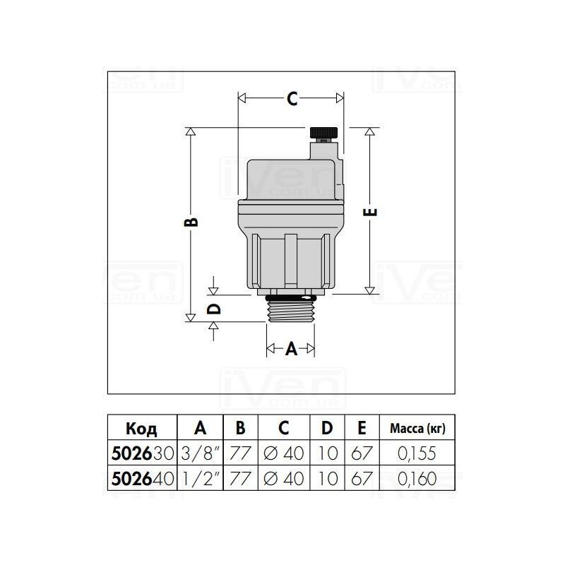 Інформація CALEFFI ROBOCAL Повітровідвідник автоматичний вертикальний d3/8" З 115°C 10 bar (502630)