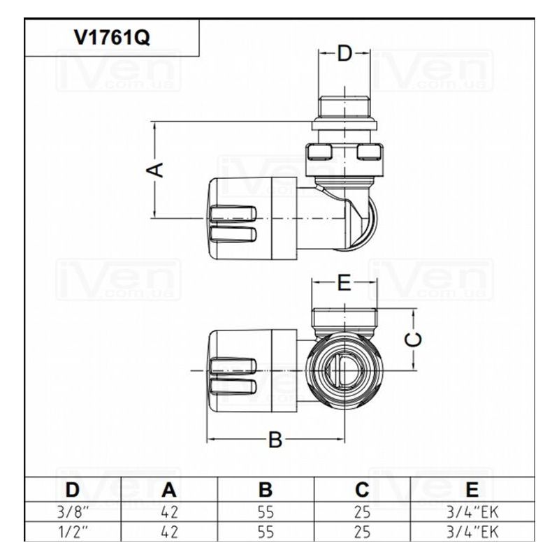 | Діаметр приєднувальних різьби до радіатора | 1/2" |
