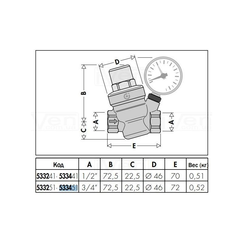 Інформація Редуктор зниження тиску Caleffi з отвором для манометру Ø3/4" хром Max. 16 bar 1÷6 bar 40°С (533451)
