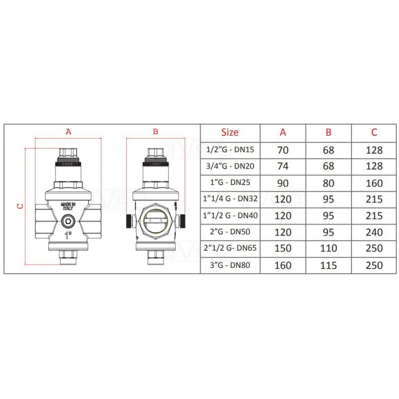 Редуктор тиску FARGFF 504 2 "спочатку розроблений для побутових і промислових систем з високими і середніми швидкостями потоку. Саме сідло редуктора тиску виготовлено з нержавіючої сталі. Основною характеристикою його функціональності є робота поршня і компенсаційної камери. Редуктор тиску FARGFF 504 випускається з внутрішньої різьбленням і з'єднанням 1/2 ", 3/4", 1", 1 1/4", 1 1/2 ", 2 ", 2 1/2" і 3" відповідно нормі ISO 228/1. у корпусі є з двох сторін отвір для манометра, під з'єднання 1/4 ". Максимально робочий тиск до 25 Бар.