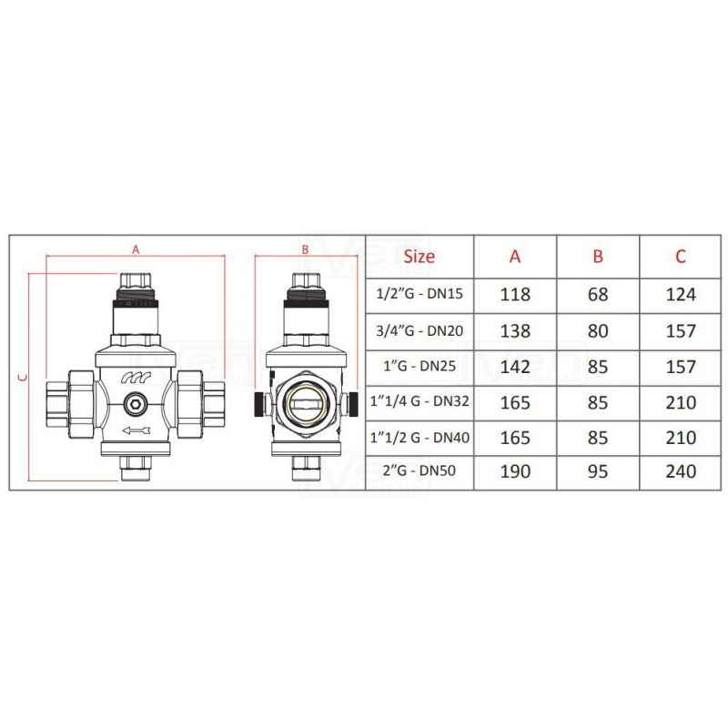 Інформація F.A.R.G Редуктор зниження тиску M.M. з американками Ø1 1/2" ЗЗ (сідло INOX) Max. 25 bar (505.11/2)