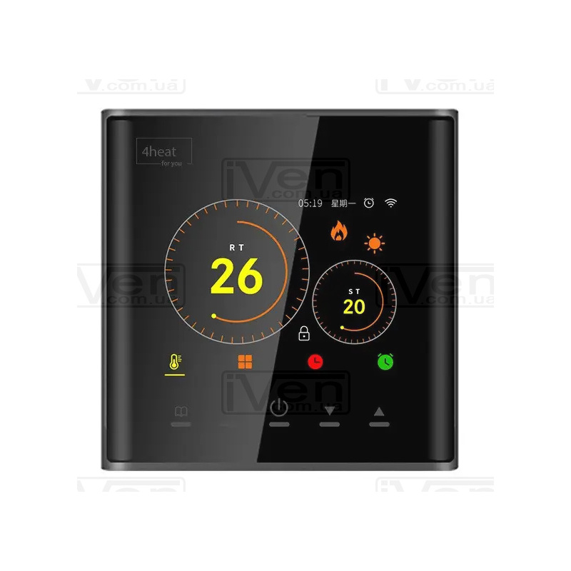 Оптові знижки 4HEAT AE-740 Терморегулятор для електричної чи водяної теплої підлоги WiFi Кольоровий дисплей, Чорний (4HT.AE740B.WF)
