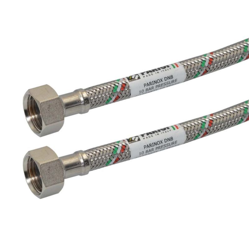 Для монтажа сантехнических установок и водопроводного оборудования служит подводка и шланги Parinox, выполненная из нетоксичной резины (EPDM) и имеющая оплетку из нержавеющей стальной проволоки, и вплетением цветов национального флага Италии, как отличительной черты продукции произведенной на территории этой страны. Концы такой подводки снабжены соединительными фитингами с самыми разными размерами штуцеров и накидных гаек.