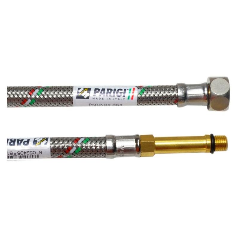 Для монтажа сантехнических установок и водопроводного оборудования служит подводка и шланги Parinox, выполненная из нетоксичной резины (EPDM) и имеющая оплетку из нержавеющей стальной проволоки, и вплетением цветов национального флага Италии, как отличительной черты продукции произведенной на территории этой страны. Концы такой подводки снабжены соединительными фитингами с самыми разными размерами штуцеров и накидных гаек.