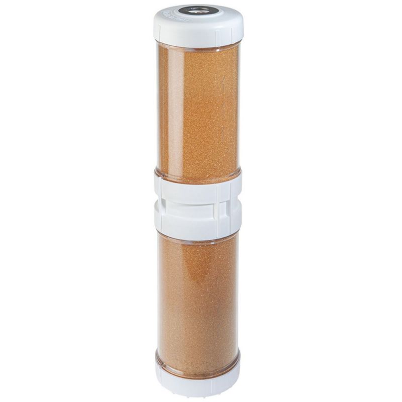 Пластиковий контейнер, наповнений сильнокислотним катіонітом для зниження загальної жорсткості (TH), забезпечує пом'якшення води з видаленням кальцію і магнію. Картриджі QA CF BIG доступні в Висота 10" і 20".