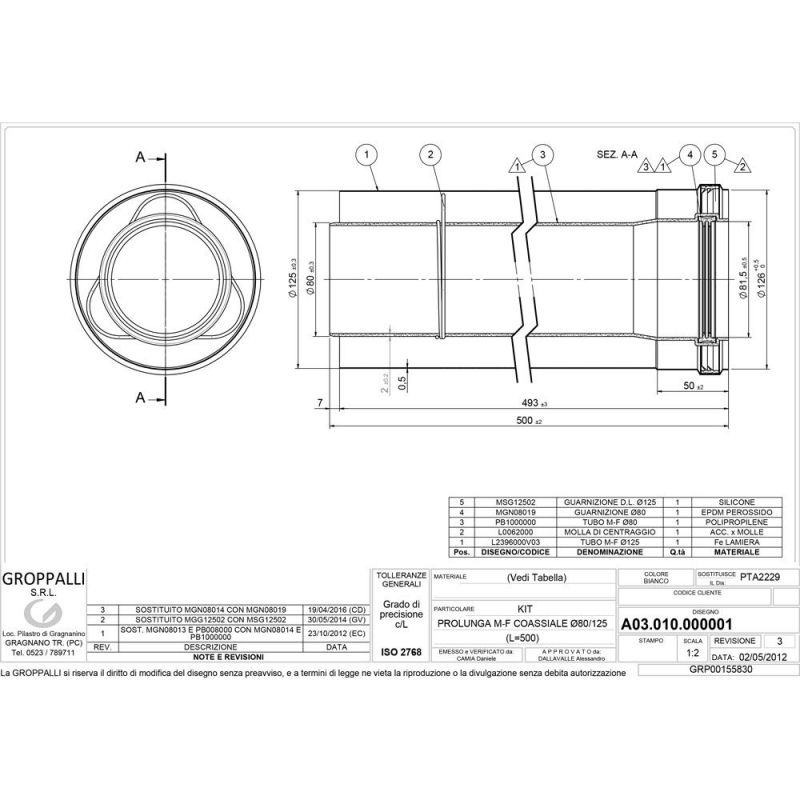 Удлинитель коаксиальный с раструбом для конденсационных котлов d80/125 L-500 mm GROPPALLI S.R.L. (A3101) изготовлен с Итальяныским качеством и в соответствии сертификации ISO 9001:2015.