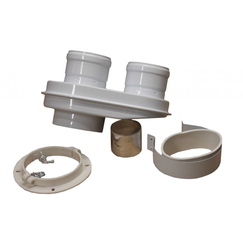 Адаптер для котла позволяет разделить на две трубы: отвод отработанных газов, приток воздуха. В комплекте так же идут прокладки для герметичности соединения.