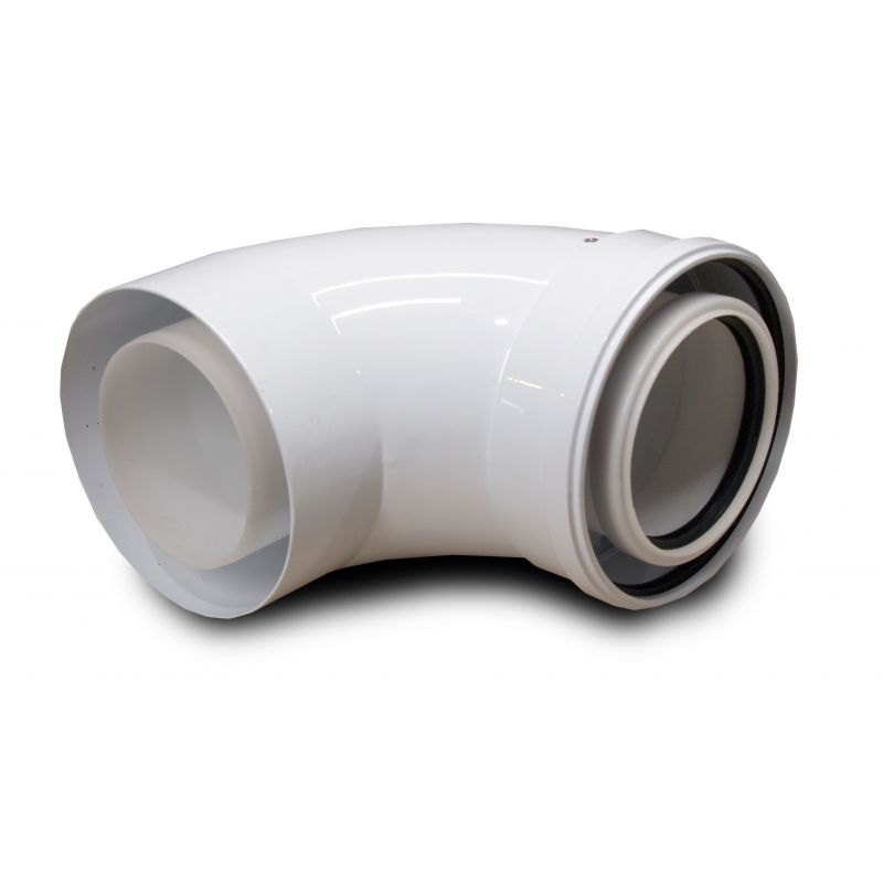 Колено 90 град. конденсационное коаксиальное d80/125 PP-R для котла. Изготовлен из полипропилена.