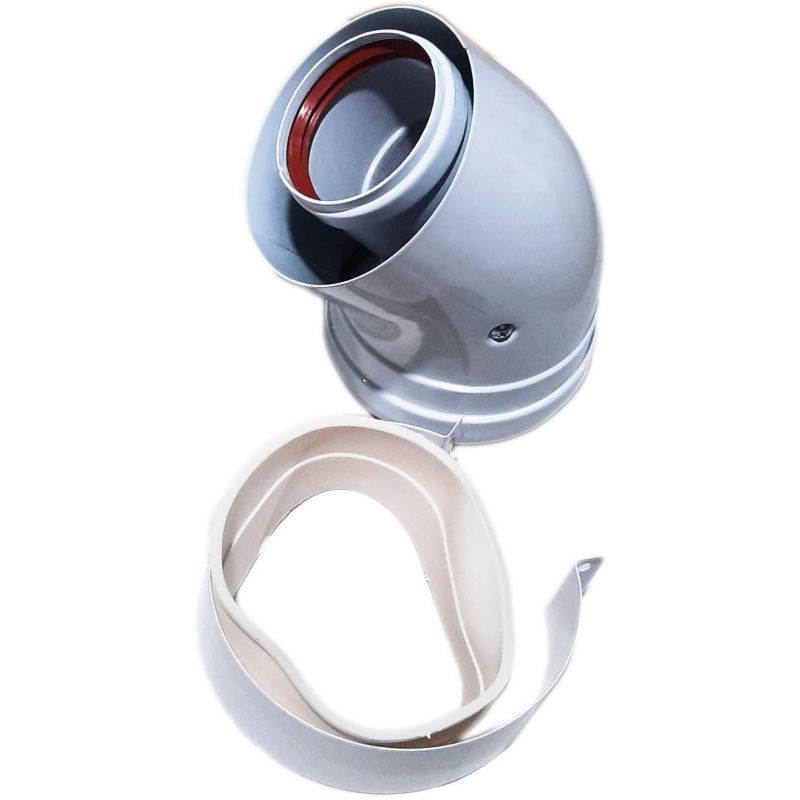 Колено коаксиальное 45 градусов для турбированного газового котла d60/100 AL+FE ММ - МП + хомут (TR.6045M)
