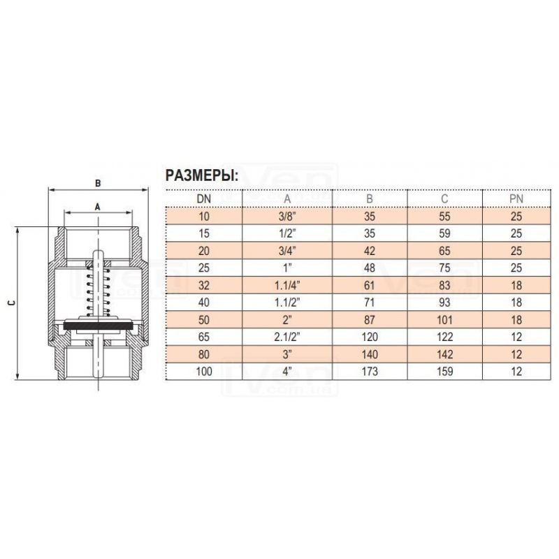 Описание Обратный клапан ITAP SpA Europa 1/2" с латунным штоком (10000004)