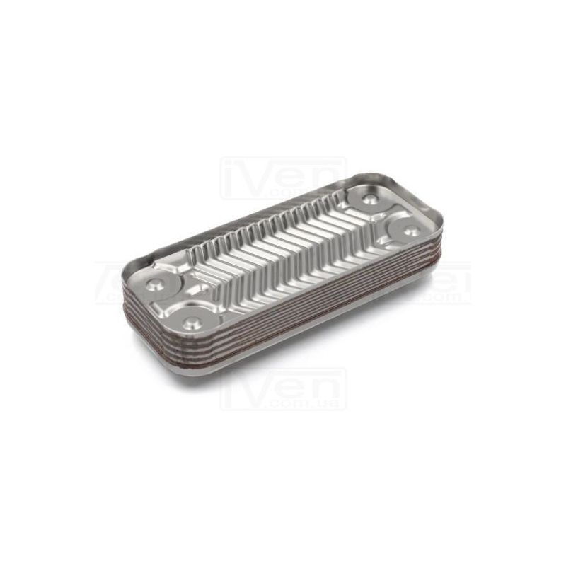 Пластинчатый вторичный теплообменник Zilmet ZB 190 на 16 пластин (17B1901600) Изготовлен из нержавеющей стали AISI 316 и 99,9% медным припоем. Совместимость для котлов Fondital Pictor, Viessmann WH1B, Zoom, Rocterm, Nobel, Ariston Uno, Beretta, Elexia, Solly, Termal, Rens, Biasi. Изготовлено в Италии.