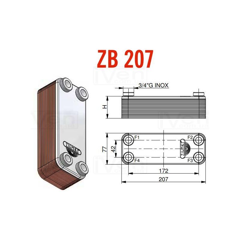 Теплообменник ZB 207 (INOX AISI 316L) 30 пластин 2 x Ø1/2" G/2 x Ø3/4" G Zilmet S.p.A. (17B2073008)