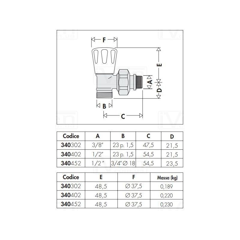 Кран радиаторный угловой Caleffi М23х1/2" (340402) ручной, вентильный, хромированный. Применяется для соединения радиаторов с металлическими, медными, металлопластиковыми трубами через зажимной фитинг с резьбой М23х1/2" (23 p.1,5). Высокие показатели давления до 10 бар и диапазон температур от 5 до 100°С.