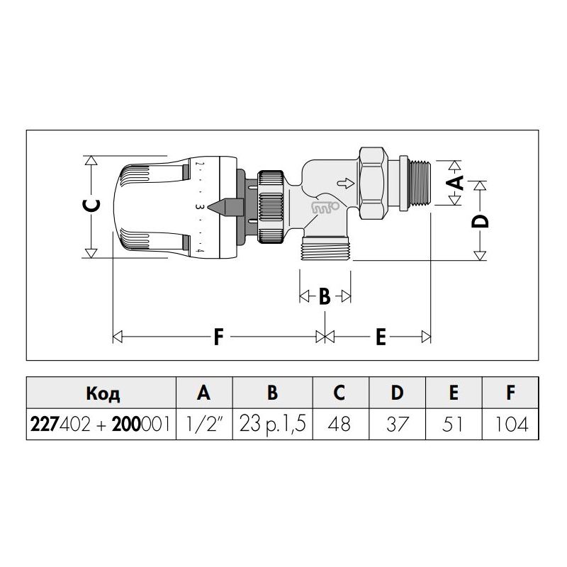 Описание CALEFFI Кран-термостат реверсивный М23 х 1,5 x 1/2" 10 bar (227402)