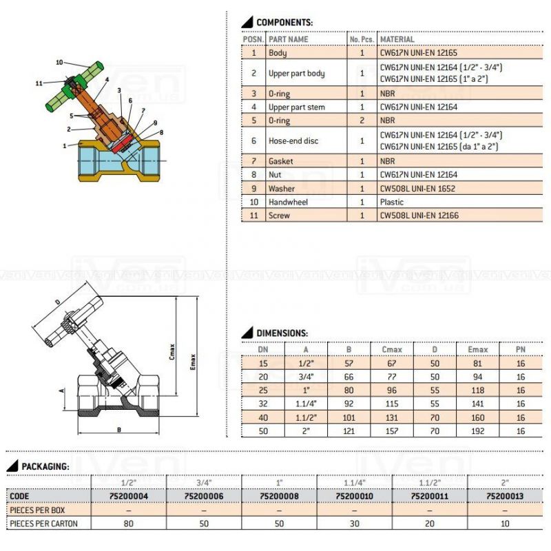 Описание Вентиль Bonomi 3/4" V-образный (7520A006)
