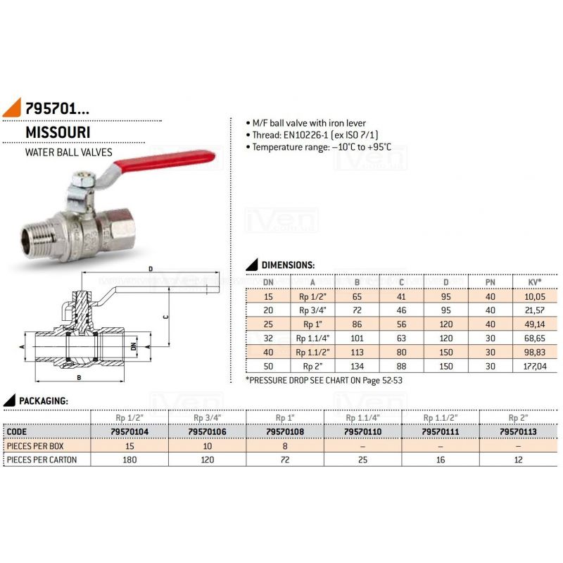 Описание Кран-S шаровой усиленный Bonomi MISSOURI 1" ВН стальная ручка (79570108)
