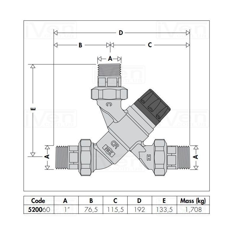 Форма корпуса Термостатического клапана Caleffi 520060