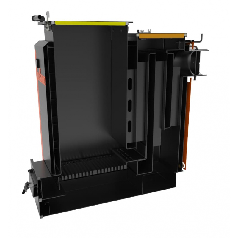 Ця конструкційна особливість дозволяє легко та швидко розпалювати котел і запобігає задимленню топкового приміщення при дозавантаженні палива.