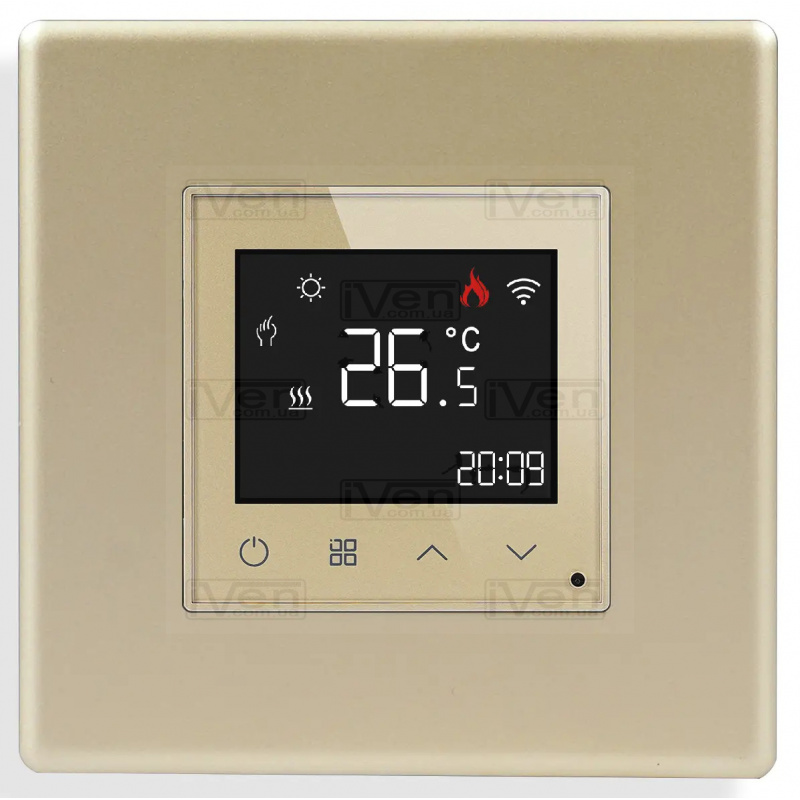 Wi-Fi терморегулятор 1DAL P86-TRWF.GD із золотою сенсорною панеллю – стильне рішення для теплої підлоги. Керуйте температурою (+5…+40 °C) через Tuya Smart або голосові помічники (Google Assistant, Alexa). Програмовані режими, простий монтаж у підрозетник, навантаження до 16 А. Купуйте в iVen.com.ua з доставкою по Україні!