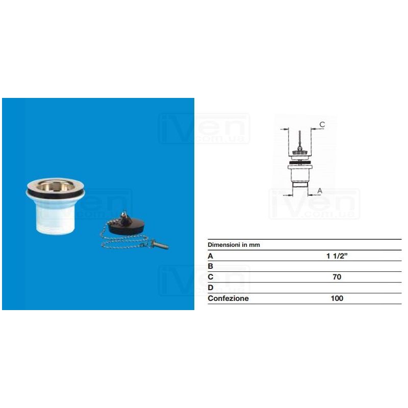 Ghidini SpA SIMPLEX Выпуск d70 х 1 1/2" (331112) Слив из полипропилена для мойки из нержавеющей стали