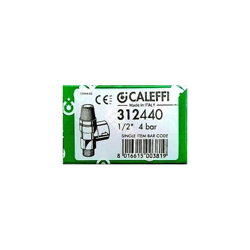 Мембранный предохранительный клапан Caleffi 312440 с внутренней резьбой на вывод и вход наружная 1/2 дюйма. Давление калибровки 4 бар. Избыточное давление при срабатывании: 4,8 бар. Закрывает дифференциал 3,2 бар. Страна производитель Италия.