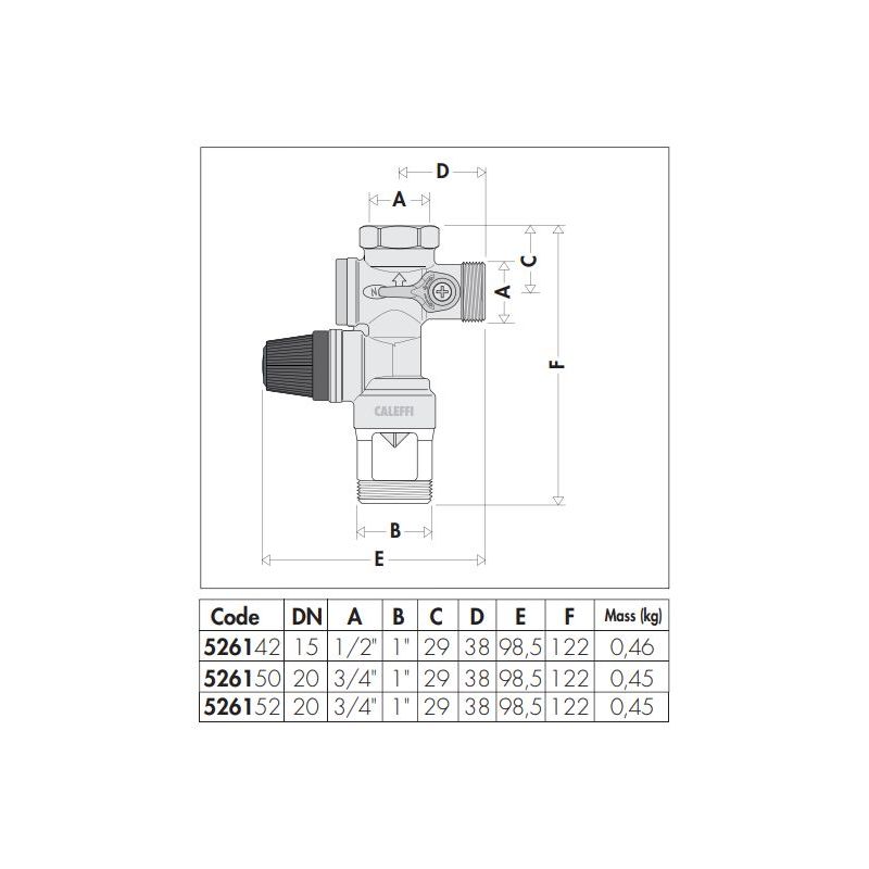 Описание CALEFFI Установка предохранительная для бойлера d3/4" Max. 120°C 7 bar. (526152)