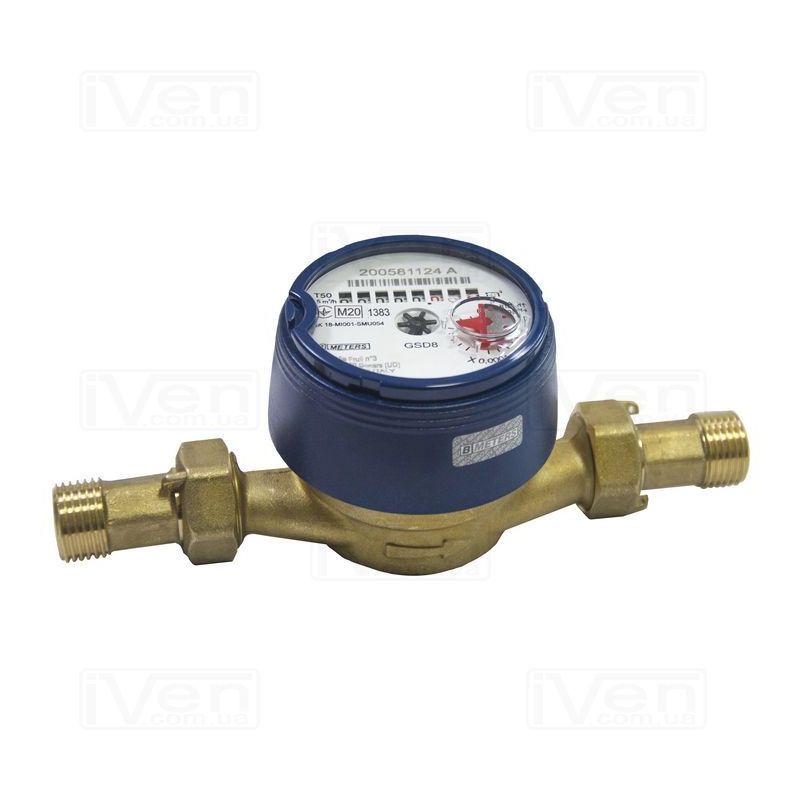 B METERS S.R.L. GSD8-I R100 Ø1 / 2 "ХВ 0 ° С-50 ° С L = 110 мм Qn = 2,5 м³ / г. Лічильники готові до використання з модулями передачі данних за стандартами M-BUS, M-BUS wired, wireless OMS, імпульсними датчиками, мають підключення діаметром 15 або 20 мм (1/2" або 3/4"), зручний поворотний циферблат. Внесені до державного реєстру засобів вимірювальної техніки, номер у державному реєстрі У2361-06. Країна виробник Італія.