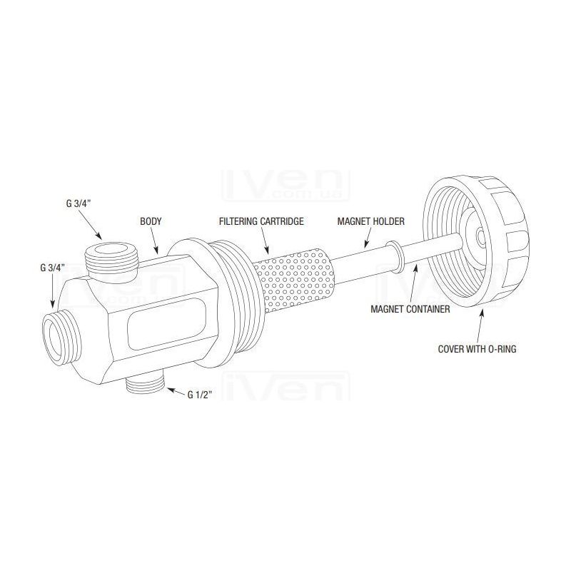 Інформація Магнітний фільтр-шламовідділювач Atlas Filtri FDM 1P 3/4" 90°C/600 μ/3 bar (RE6170110)