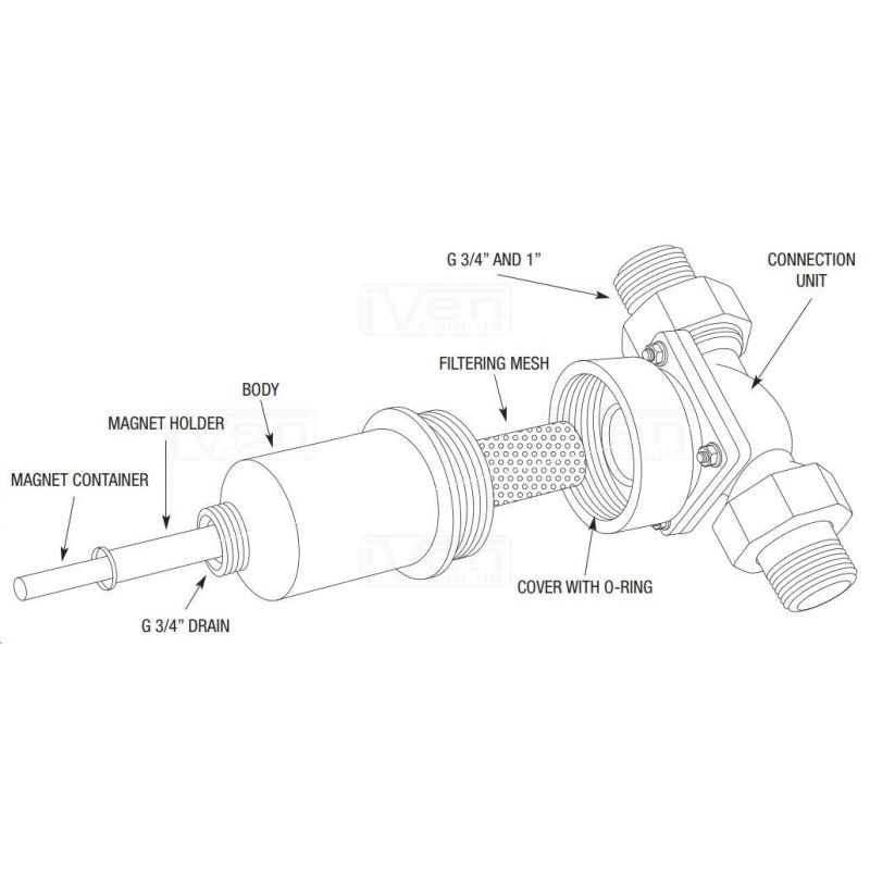 Інформація Магнітний фільтр-шламовідділювач Atlas Filtri FDM 2A 3/4"-1" 90°C/600 μ/3 bar (RE6170120)