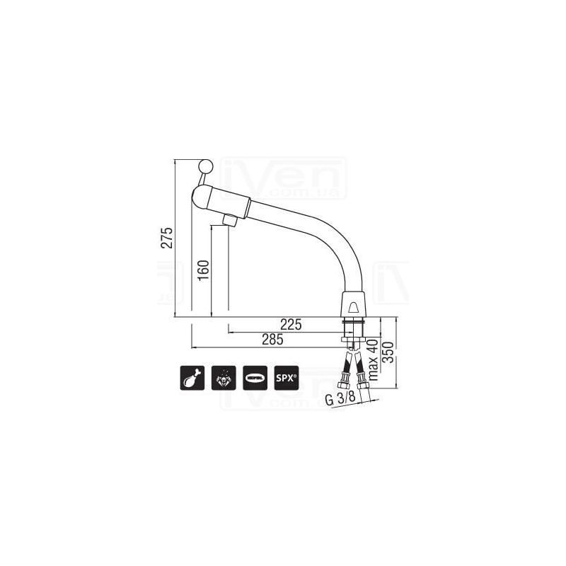 Nobili Nuvola NU12200CR Змішувач для кухні. Поворотний вилив. Аератор проти вапняних відкладень M 22 x 1. Шланг з нержавіючої сталі d 3/8 ".