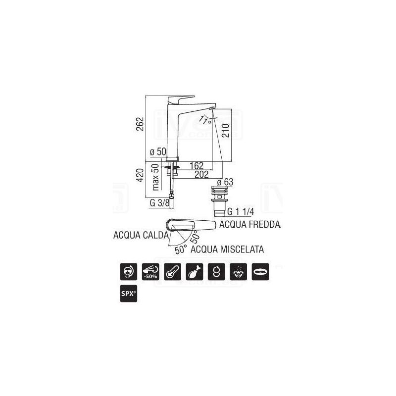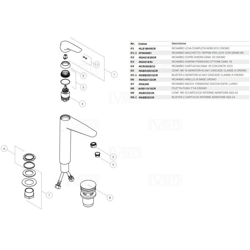 Nobili Nobi NBE84128/2CR (NB84128/2CR) Змішувач для раковини. Аератор проти вапняних відкладень M 24 x 1. Нажимной слив d 1 1/4 ". Шланг з нержавіючої сталі d 3/8 ".