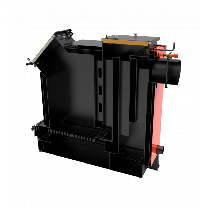 Ця конструкційна особливість дозволяє легко та швидко розпалювати котел і запобігає задимленню топкового приміщення при дозавантаженні палива.