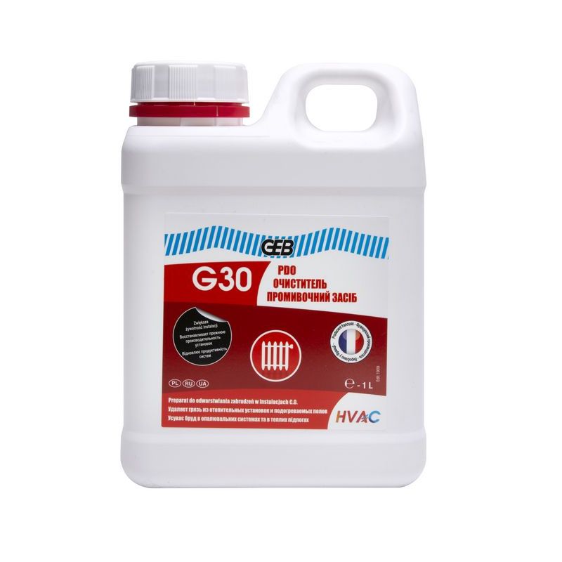 Інформація G30 873000 / 872418 Рідина для промивки систем опалення Desembuant 1 л GEB SAS (872418 / 873000)